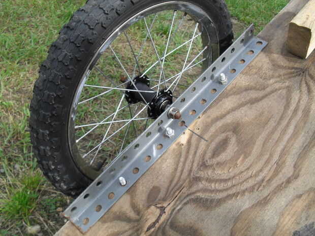 -ángulo de hierro con agujeros sus ejes de rueda se ajusta a través de (la diferencia de tamaño es porque son solo pedazos de chatarra que no tenía ganas de corte)