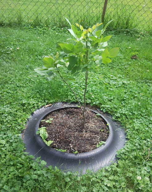 Nuestros anillos se han hospedado en el lugar a través de varias siegas sin clavos o estacas. Sin embargo, sería bastante fácil perforar algunos agujeros a estacas de coche en para sostener el anillo en su lugar. También hemos llenado en algunos anillos de los árboles con pajote ahora y permanece muy bien puesto.