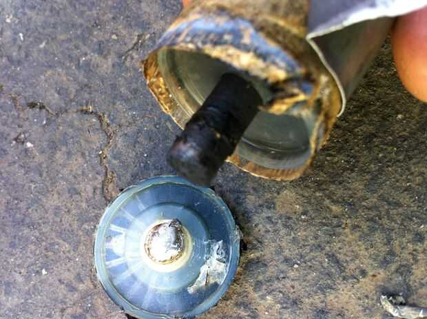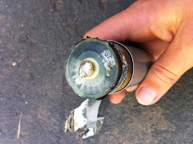 Una vez que la cubierta de níquel se pela hacia atrás lo suficiente, puede quitar la tapa de plástico y papel para ver el final de una gran barra de carbono. (La pieza más valiosa en la batería a mí).