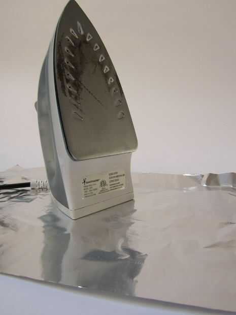 Limpie su plancha: seguro, mi plancha no llega bastante uso a ensuciarse, pero puede. Algún día. Para obtener esos feos pedazos de plástico derretido de la suela antiadherente (¿por qué le deje la plancha en lo alto encima de los botones?), simplemente pase la plancha en alto sobre un trozo de papel de aluminio con algo de sal en la parte superior. La abrasión de la sal ayudará a bajar el plástico. No frote el recubrimiento antiadherente, aunque.