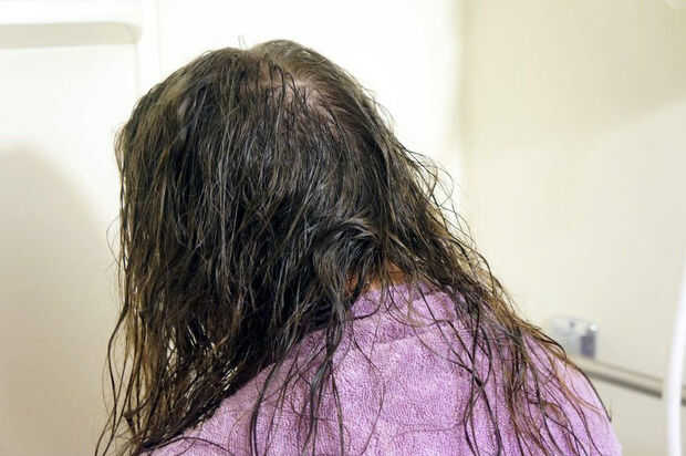 Aplique el líquido por todo tu cabello y trabajar con la punta de los dedos.