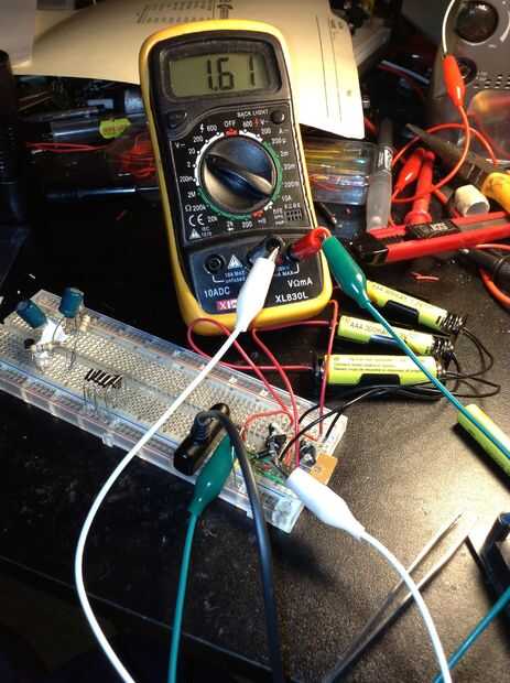 Las imágenes del circuito muestran 3 baterías montadas para hacer un voltaje de salida de 4.5volts cerca con 2 circuitos.