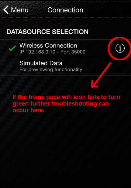 Abrir la aplicación, la configuración predeterminada es común entre la mayoría de los adaptadores. El icono de conexión iluminará en amarillo si se está comunicando con su adaptador como parte de su inicialización. Debe a verde dentro de 10 segundos. Si se niega a verde (totalmente conectado) leer los consejos a continuación.