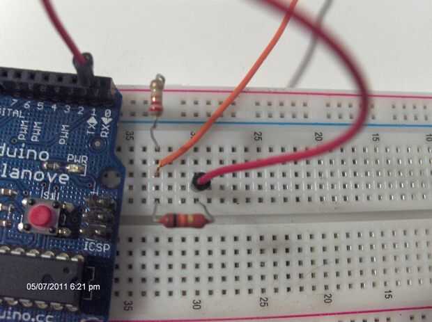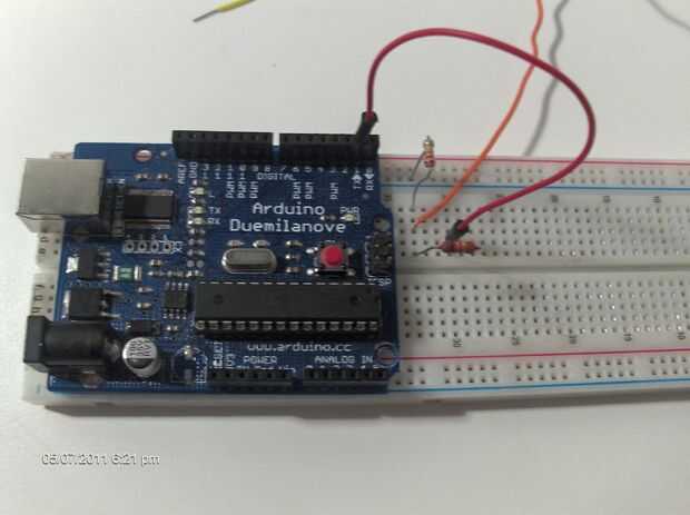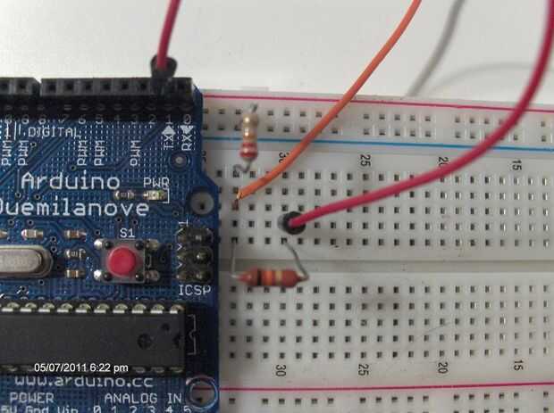 -Conecte el extremo último de la resistencia de 10 k al pin Tx del Arduino (pin 1)