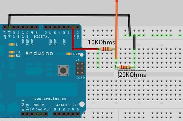 -Conecte el otro extremo de 20k a la resistencia de 10 k