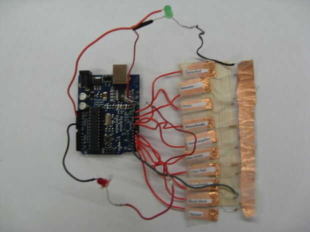 Y eso es todo! Cinta de cobre toma algún tiempo para asegurarlo bien y es insustituible para una buena soldadura - pero cuando el punto entero de hacer un dispositivo crear una manifestación física de un juego de palabras barato (en este caso, un "United State Machine), que hace el truco, crear sólidas conexiones rápida y barata.