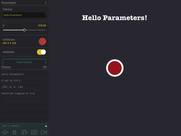 También verá un botón en la parte superior izquierda. Esto trae la consola como una barra lateral. La consola puede haber entrada en forma de parámetros y la salida en forma de texto en el campo de salida. En este programa, sin embargo, ninguno de los está presente como la consola es principalmente para propósitos de depuración. Para obtener más información en la barra lateral de la consola, mire el ejemplo de los parámetros. La figura 3 muestra lo que parece.