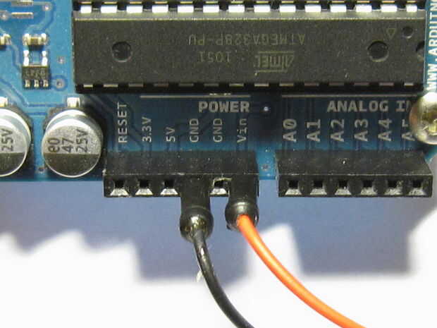 También conecté el suelo receptor arduinos y 5v out del receptor para el Vin en el arduino
