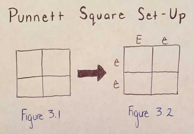 3. Escriba el genotipo del padre en el lado izquierdo de la Plaza. Cada letra estará al lado de una caja.