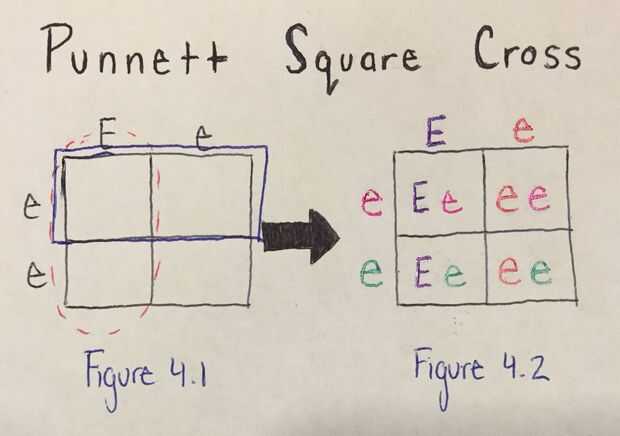 - Cada caja debe terminar con dos letras en él. Estas dos letras forman el genotipo de un descendiente. (Ver figura 4.2)