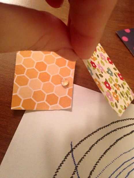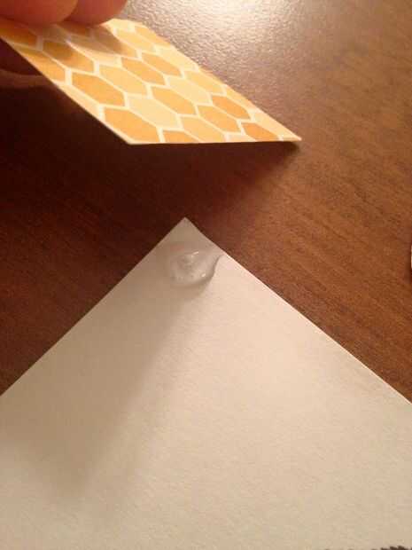- Colocar un punto de pegamento en la esquina deseada desea iniciar y pulse la Plaza sobre el pegamento.