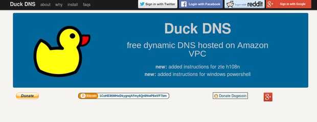 También, de vez en cuando su dirección IP "en vivo" puede cambiar lo que hace imposible llegar a su proyecto hasta volver a casa y ver la nueva dirección con www.whatismyip.com. Hay un gran servicio gratuito que usted puede suscribir a DuckDNS llamado ( www.duckdns.org ) que le dará un nombre en su servidor y una pequeña herramienta para ejecutar en su PC que se realizar un seguimiento de los cambios. En lugar de utilizar la dirección IP, usted podrá usar {Tu_nick}. duckdns.org. Realmente funciona bien!
