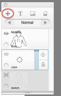 A crear una capa sólo por eso y asegúrese de que está bajo mi arte de línea. Para crear una nueva capa, pulse el botón "+" en la parte superior del editor de capa: