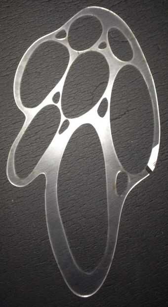 Después un par de graba que decidí cambiar de carrera de diseño a 0.01 y rojo (255 0 0), que es el láser de corte de ajuste para la corte, en lugar de grabado. Aquí está una foto de un intento. Un poco parece un poco la máscara de la película de Scream!