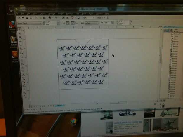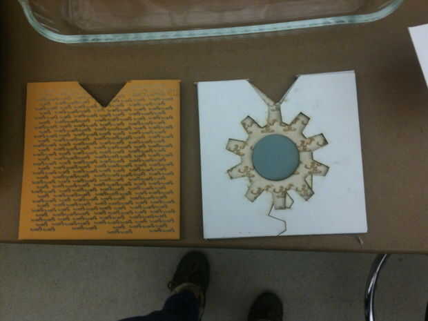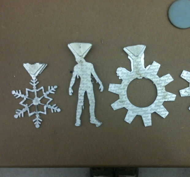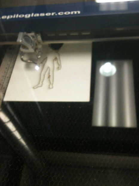 • Utilice CorelDRAW y el cortador del laser para cortar la silueta de su diseño, de una de 6 "x 6" piezas de tablero mate.