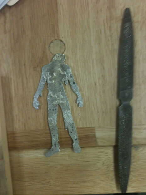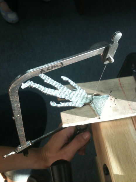 • Use Sierra de joyero con una hoja gruesa (#2) para cortar la "colada" (negativo en molde) "botón" (positivo en metal).