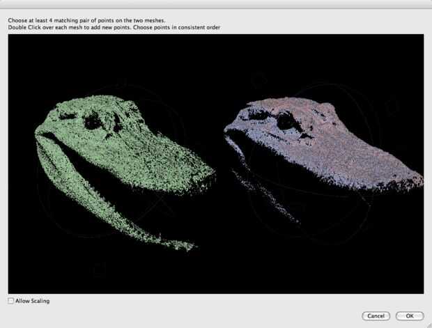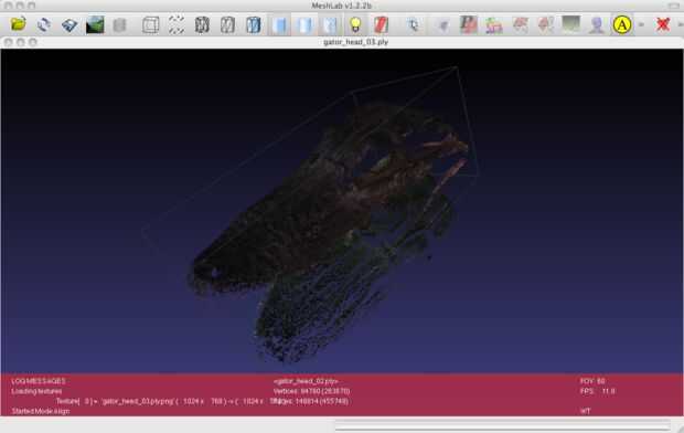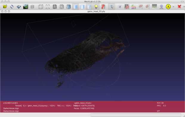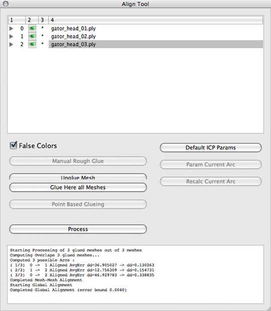 Haga clic en el botón de proceso después de alinea la tercera malla y guarde el nuevo archivo. Las mallas de procesamiento después de cada nueva malla se pega en su lugar aumenta la exactitud de la alineación. Esta técnica proporciona el software con más datos para ayudar a determinar la ubicación adecuada. Como se alinean las mallas cada vez más, el tiempo de procesamiento aumentó, pero la exactitud mejora vale la pena la espera.