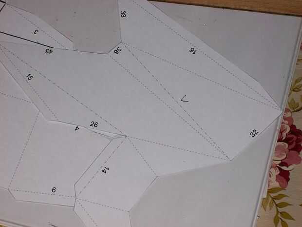 Por lo que uno tiene los dobleces para todas las piezas, necesita unirse a ellos. Recoger una pieza doblada y tomar nota de algunos de los números que aparecen en él. Ahora echar un vistazo a los números en las otras piezas. Cuando se encuentran dos de los mismos números, has encontrado dos piezas que necesitan ser Unidas. Esto es muy simple. Uno de esos números tendrá una aleta doblada debajo de él. Lo que hará es tomar el borde numerado que no disponen de una solapa y deslice hasta la línea de doblez de la tapa numerada, poner la tapa en la otra pieza. Tengo una imagen para aclarar esto. Para mantener em juntos, poner algún pegamento en la aleta o cinta adhesiva de ambos lados de la articulación. Usted querrá cinta de ambos lados para dar fuerza a la pieza terminada.