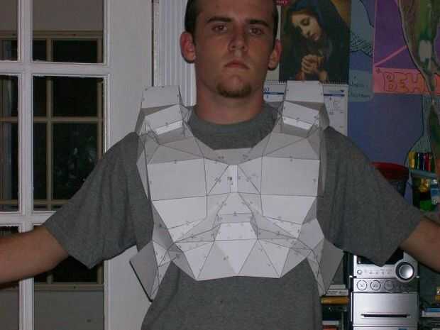 Repita el proceso hasta que tengas una pieza 3D terminada. En cuanto a cuántas piezas completos se debe montar antes resinación, incumbe a usted. Pensar acerca de cuánto espacio tienes que almacenar las piezas mientras cura. Por ejemplo, si sólo tienes el espacio para almacenar dos brazos, sería mejor les resinación y pasar al corte y plegado de otras piezas como los brazos de la curación. A desarrollar una sensación para esto al trabajar con el traje.