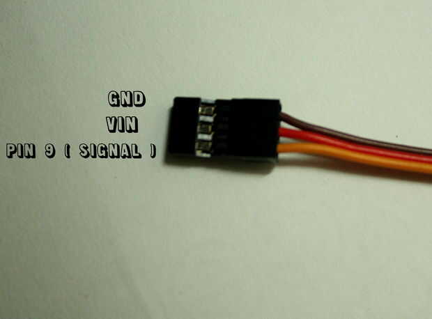 2. Coloque el perno de la señal de color amarillo/naranja de servo a pin 9 del arduino.