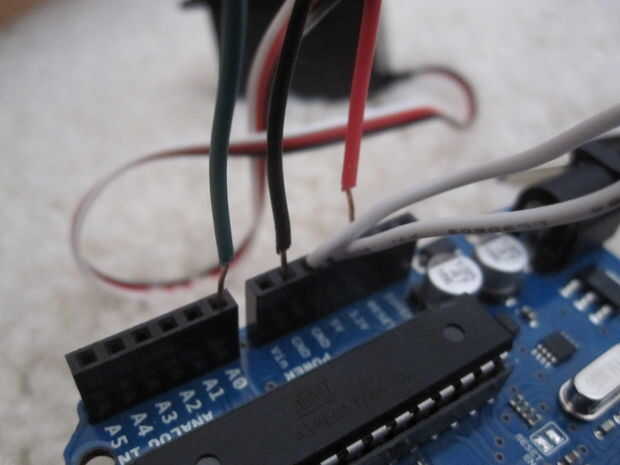 Ahora que tienes la configuración del sensor para que trabajará para con arduino, puede sustituir la olla con él para hacer un servo que mueve cuando algo está delante de él y se mueve cuando no está delante de él. Utilice el mismo código que hiciste con el potenciómetro. pero esta vez en lugar de utilizar la olla, conectar uno en el qrd a A0 en la placa arduino. conectarse las dos resistencias de 3, 3V y conectar el pin 4 y 2 en el qrd a la tierra en el tablero. Ejecute el programa y cuando hay algo alrededor de 1 cm del sensor el motor girará de una forma, y cuando el objeto se mueve lejos del detector el servo se mueva hacia atrás. intenta añadir una celda foto para hacer un servo sensible luz. uso de sensores con el servo, usted puede hacer robots, animatronics y más. ¡Que te diviertas!