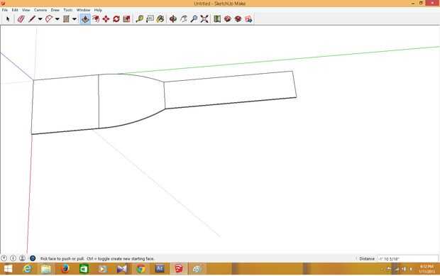 Utilice la herramienta arco y haga clic en el borde de la línea que acaba de hacer y luego haga clic en el borde donde la mitad corto y largo medio encuentro, repetir en el lado opuesto.