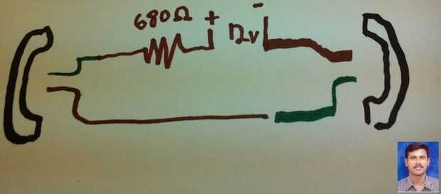 El circuito para trabajar dos teléfonos como un intercomunicador es muy sencillo. Se puede ver en la foto, todo lo que realmente necesita es un poco de cables de teléfono, una caja de ensambladura, resiter 680 Ohm (incluso sin resiter este circuito trabajará para obtener mejor resistencia de allpy de resultado) y 12v o 9V DC fuente de alimentación (pila o adoptante).