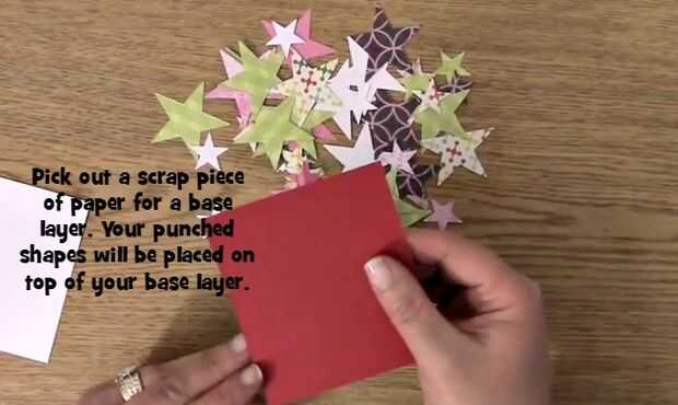 Destacar el papel que se pegar en su tarjeta. Preferentemente algo las coordenadas con las formas perforadas hacia fuera. Utilicé un pedazo de papel 2 1/2 x 3 1/2 pero puede usar cualquier tamaño que se ajuste adecuadamente a su tarjeta.