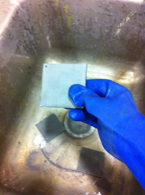 si es capa del polvo, el último paso de preparación me gustaría realizar antes de aplicar la capa de polvo limpiar las partes con acetona.  Esto elimina todo el aceite a la izquierda en la parte, incluyendo los aceites de las manos y dedos.  Como tal