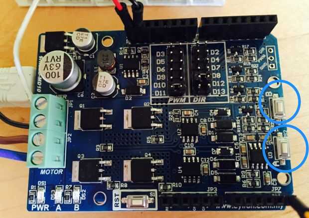 El regulador del motor que estamos usando para el ejemplo tiene poco interruptores para mover manualmente el actuador a toda velocidad. Con el interruptor para mover el motor en cualquier dirección debe causar el valor leído de la entrada analógica a < 490.