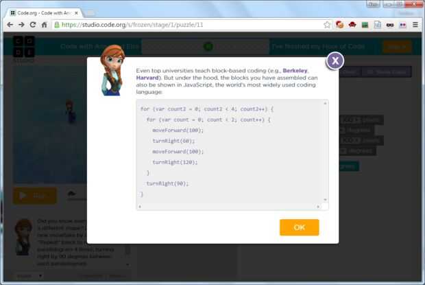 Una vez que un patrón en el tutorial que desee utilizar, haga clic en el botón "Mostrar código". Copie y pegue el código en la función loop() del sketch de Arduino. Este código es de Ana y Elsa paso 11: