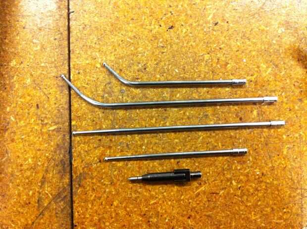 El indicador coaxial tiene varios diversos accesorios. Los accesorios curvados son para exterior de centrado, los rectos para adentro, y el corto puntiagudo es para centrar en un punto central o un pequeño agujero. Seleccione la que mejor adapte a su propósito e inserte en la parte inferior del indicador. Utilizar la llave pequeña para apretar cómodamente, pero no demasiado apretado.