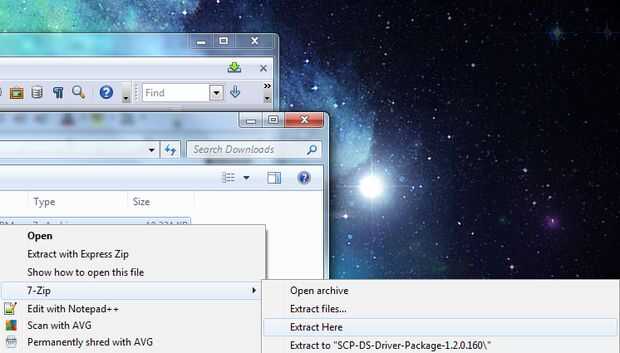 Haga clic derecho sobre el archivo, luego desplácese hasta el 7-Zip y luego extraer aquí