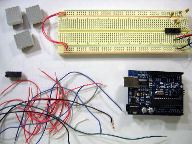 Este proyecto se basa en un taller que organizamos en Makespace Madrid como parte de "La noche de la electrónica con Jameco". En un anterior instructable ya presentamos cómo manejar una sola matriz de LED con Arduino. En este proyecto nos conec