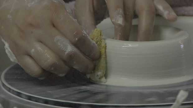 Luego sacar de ese punto central hacia las 6:00. Utilice sus dedos para comprimir la arcilla a lo largo de la parte inferior para asegurarse de que no hay burbujas de aire y las partículas se alinean. No te olvides de limpiar la mezcla aquí también con una costilla o una esponja.