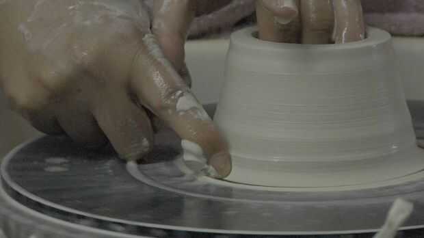 Una vez que termines de compresión, presione ligeramente con la mano derecha. Esto comenzará a construir la pared. Luego cavar una zanja pequeña en la parte inferior de su cilindro con el dedo. Se utiliza para empezar a presionar en la arcilla con la mano derecha. Coincidir con la misma cantidad de presión con la mano izquierda, que está dentro de la forma. Aunque la mano izquierda (el que está dentro de la forma) será ligeramente por debajo de su mano derecha, debe mover en tándem con la misma cantidad de presión. Puede aligerar su presión al llegar a la cima si se observa que la pared es más delgada en la parte superior.