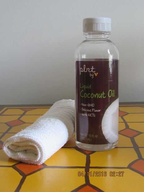 Hay al menos 100 usos para el aceite de coco, así hay más para agregar. Utilizar este aceite en mis sillas de cocina de hierro y tabla como un objeto curioso de hierro. Cuando utilicé un paño húmedo o limpiadores multipropósitos dejaron el acabado ma