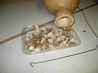 Usa el palito para revolver todo dentro de la calabaza para aflojar las membranas secas y semillas. Puede que necesite utilizar un pedazo de alambre pesado con un gancho en un extremo para quitar algunos trozos. Abandonada, guardar algunas semillas para el próximo año o para regalar a los amigos de jardinero.