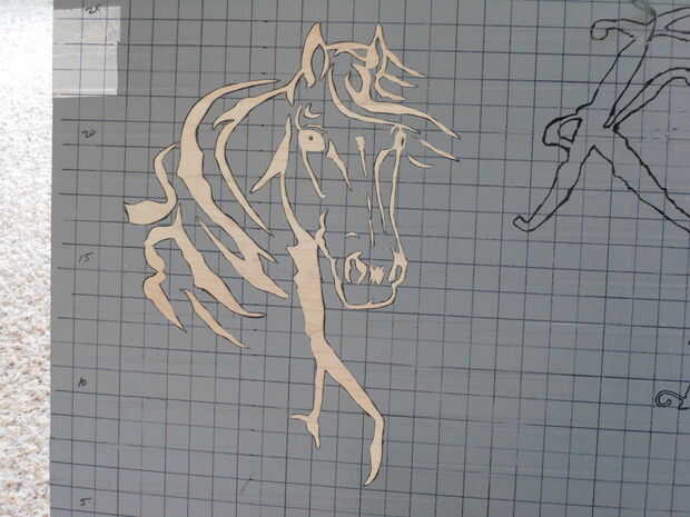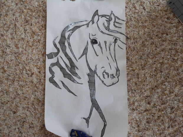 Recortar la ilustración mediante la hoja de afeitar.  Cuidado es importante, pero recuerde que la hoja no es lo peor que esta cinta va a ver.  Me transfirió el cutings a otro pedazo de papel y había utilizado otra vez como una plantilla para pintar.  Funcionó muy bien!