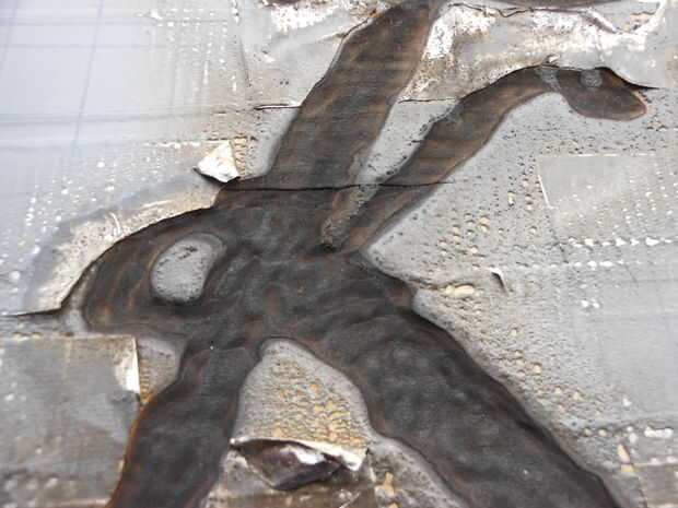 You guessed it! Ahora es el momento para quemar! He utilizado un soplete de gas MAPP al principio en las áreas más grandes, sin embargo, esto no es necesario. Era demasiado grande y un poco difícil de controlar. Observe en las imágenes cómo se está derritiendo la cinta y la cinta se está deshaciendo. Si esto sucede, solo espere que el metal se enfríe y pegarlo con cuidado hacia abajo. La cinta se quema bien por lo que tendrás cuidado y uso moderado de la llama. Mejor quemar una sección y dejar que se enfríe mientras quema otra sección. Si quema demasiado demasiado de cerca, te abruman las capas de cinta y todavía conseguir madera carbonizada debajo. Esto me pasó en zonas con detalles realmente finos. No se estrese demasiado si esto sucede aunque. Te digo una manera de ocuparse de él más adelante. Tuve que mantener poner incendios voluntarios que comenzaría en la cinta del conducto. La última capa de la cinta por cierto empezar burbujear debajo de todo, sin embargo todavía hizo un gran trabajo en la protección de la madera.