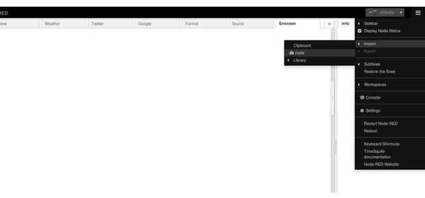 Ir en el menú → importar → nodo y tipo «ttb-enocean». Espera para la instalación y reinicie. Ahora puede utilizar dispositivos enOCean.