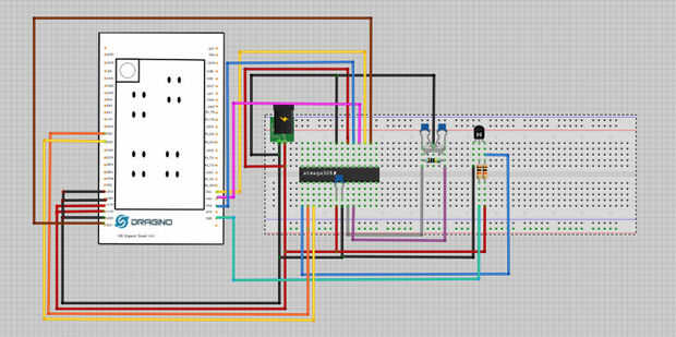 En este proyecto, que potencia el él y Mega328P con 3, 3V de alimentación, así que no tenemos que añadir el cambio de nivel entre el mega328p y él.