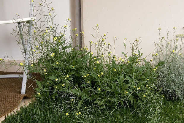 Rúcula o ensalada de rúcula es escuchar a menudo en menús de restaurantes de lujo. Lo que no saben es que es una maleza común. Con sabor a nuez/picante su mi favorito personal. Tenga en cuenta que el sabor picante se vuelve más intenso en más hojas (también son un poco mas fuerte como la espinaca) así que si no como eso más jóvenes hojas.