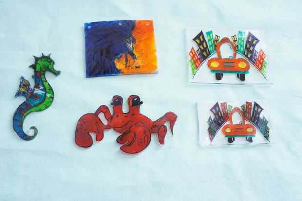 Estoy incluyendo este paso para el artista que vender o regalar su arte como regalos. Tome fotos de su arte. Esto le ayudará a recordar el hermoso arte que ha creado y si quiere; se puede crear algo significativo de los cuadros que usted u otras personas puedes usar algunas de estas técnicas. Sólo trazó los cuadros en pintura y les redimensionada y la imagen a imprimir. I localizar la imagen en una hoja de plástico y deje que se seque. Volví y había coloreado con el marcador. El caballo era difícil y necesito practicar un poco más de mezcla los colores pero funcionó muy bien en las otras imágenes. luego seguí las instrucciones para el plástico del encogimiento.