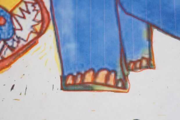 Utilizando el lápiz de trazo rojo bordado; Resumen de la obra de arte utilizando líneas de lápiz pesado en la parte delantera y trasera el patron. Si usted puede ver una imagen clara del patrón cuando se coloca bajo el algodón no necesitará utilizar el lápiz de la transferencia. A trazar la imagen sobre el algodón con un lápiz normal. Usé el lápiz de la transferencia es porque quería que la imagen del patrón sea tan exacta a la original como puedo conseguirlo. Yo se planchar el diseño trazado sobre el algodón en el paso siguiente.