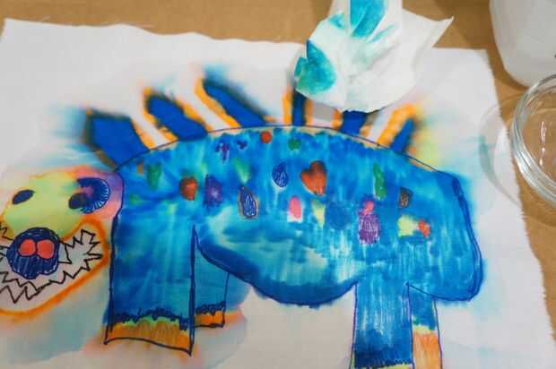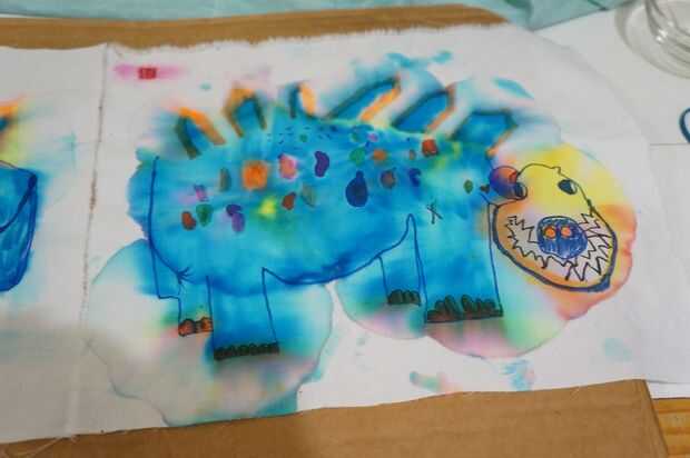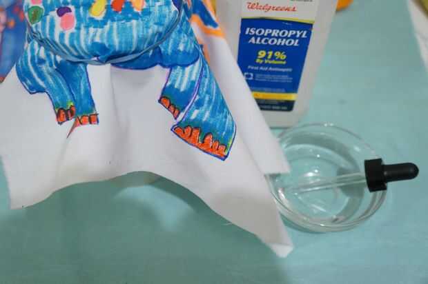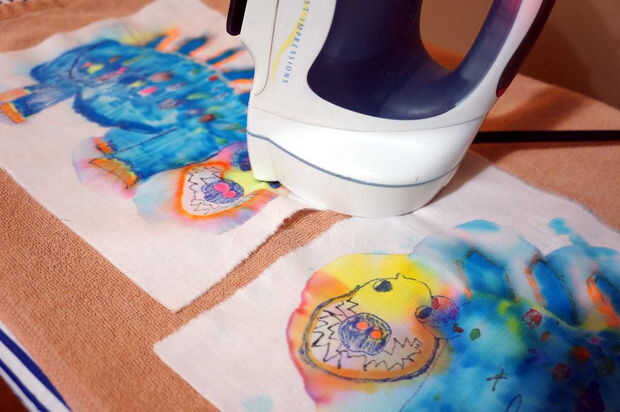 Al principio de este tutorial mostró a diversas telas que he pintado. Algunas de las imágenes que he pintado yo no alteró. He utilizado marcadores regulares y marcadores de la tela. También utilicé marcadores gruesos y delgados dependiendo de los diseños en la obra de arte. Usé un paño sumergido en el alcohol y frota las secciones pintadas; que le da un poco más control sobre el efecto. Otros que utiliza el gotero y el método de vidrio; que es más aleatorio. Si usted desea la mirada de tinte de corbata; el vidrio y la banda de goma es la forma más efectiva para lograrlo. Mi esposo y yo le gustaba el aspecto pintado mejor. Después de pintar la tela con los marcadores de decidir qué ver que quiere y si te gusta el look pintado Presione la tela sobre un trozo de papel que no se mancha su tabla de planchar (no ajuste de la plancha de algodón). Esto calentará fijar la tinta de la tela y evitar que la tinta se descolora cuando se lava.