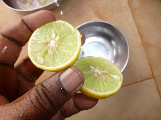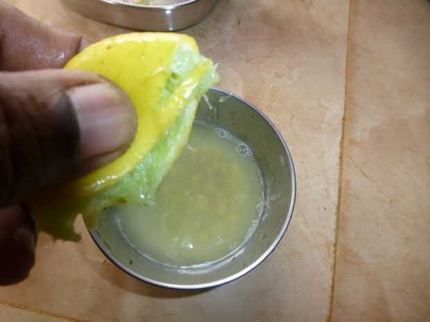 Tomar un limón fresco, cortado en mitades. Extraer el jugo en un recipiente separado, que puede ser casi igual a la cantidad de gel de Aloe Vera. Vierta el zumo de limón sobre el Gel de Aloe. Asegúrese de mantener las semillas en el mismo recipiente.
