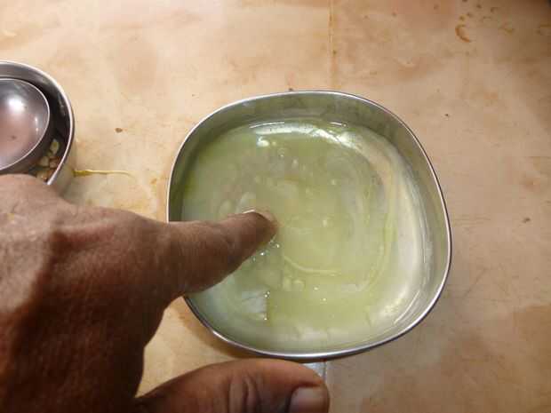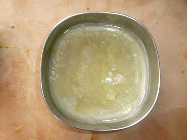 Añadir el aceite natural del cabello al gel de Aloe Vera + mezcla de jugo de limón. La cantidad puede ser igual a la cantidad de jugo de limón. Aquí he usado aceite de coco natural, pero puede utilizar cualquier aceite disponible para usted. Mezclar los tres ingredientes con los dedos. Nuestro Aloe Vera Gel cabello paquete está listo.