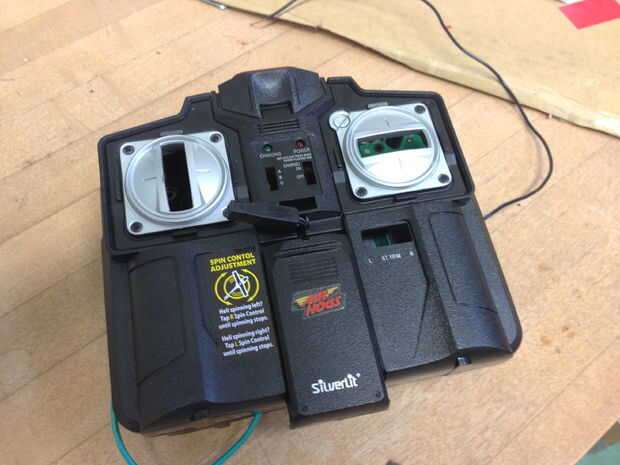 Así que tomó aparte del control remoto (Foto 3) y encontró que el joystick que controla el para arriba - moción es simplemente deslizando un conector de metal circuito sobre estas pastillas. El más alto hasta el circuito que completa, cuanto más rápido van los rotores.
