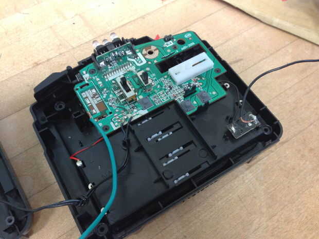 El cable negro se conecta a la tierra de las baterías en el mando. Nos vamos a conectarlo a la tierra del Arduino que había una tierra común entre el control remoto y el Arduino. Esta manera, el Arduino serían capaces de escribir bajo un pin digital, que se conectaría a una almohadilla mediante un cable soldado y completa varios circuitos dependiendo de la ubicación de un puño en el sensor.